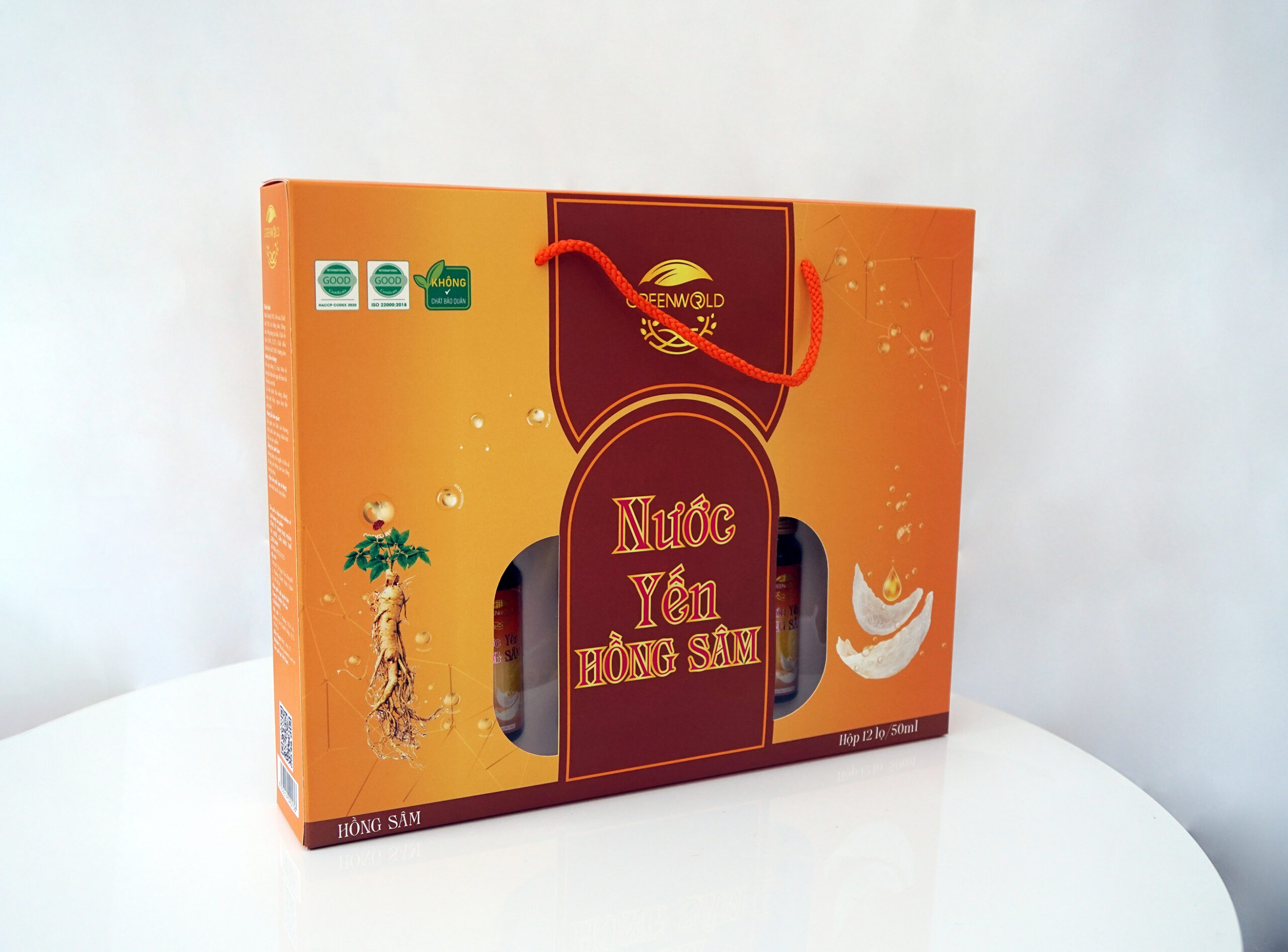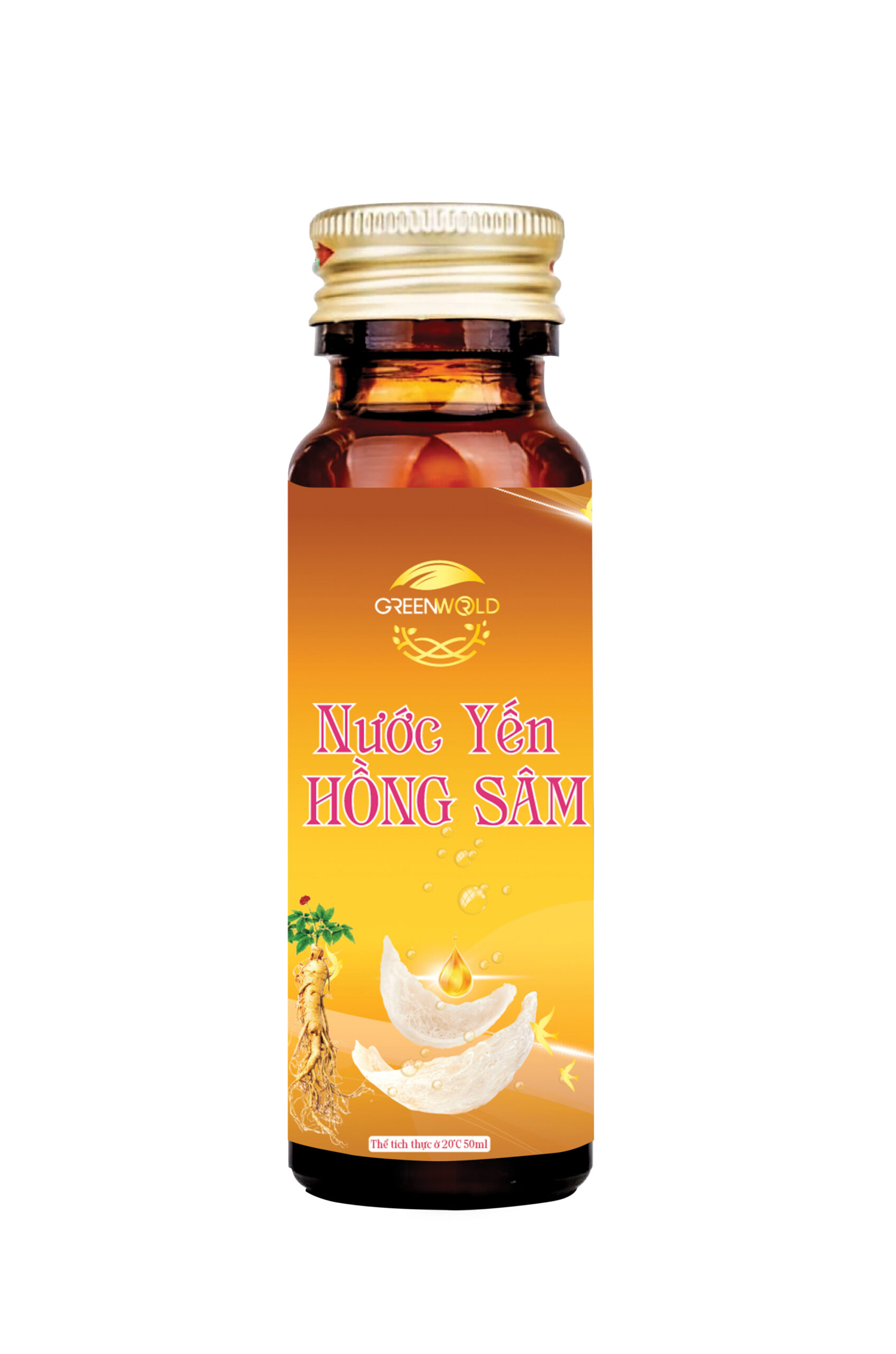 Thành phần: Nước, Đường (10%), Yến sào ( 0.01%), Chiết xuất (10%) từ : Hồng sâm, Đẳng sâm, Đông trùng hạ thảo. Chất ổn định (E418, E327), Chất điều chỉnh độ Acid ( E300), Hương sâm. Hướng dẫn sử dụng: Lắc đều trước khi uống, dùng uống trực tiếp, ngon hơn khi uống lạnh. Hướng dẫn bảo quản: Bảo quản nơi khô ráo thoáng mát, tránh ánh nắng chiếu trực tiếp vào sản phẩm. Thông tin cảnh báo: Không dùng cho người có tiền sử dị ứng với các thành phần của sản phẩm. Ngày sản xuất, hạn sử dụng: Xem trên bao bì sản phẩm Thể tích thực ở 200C: 50 ml