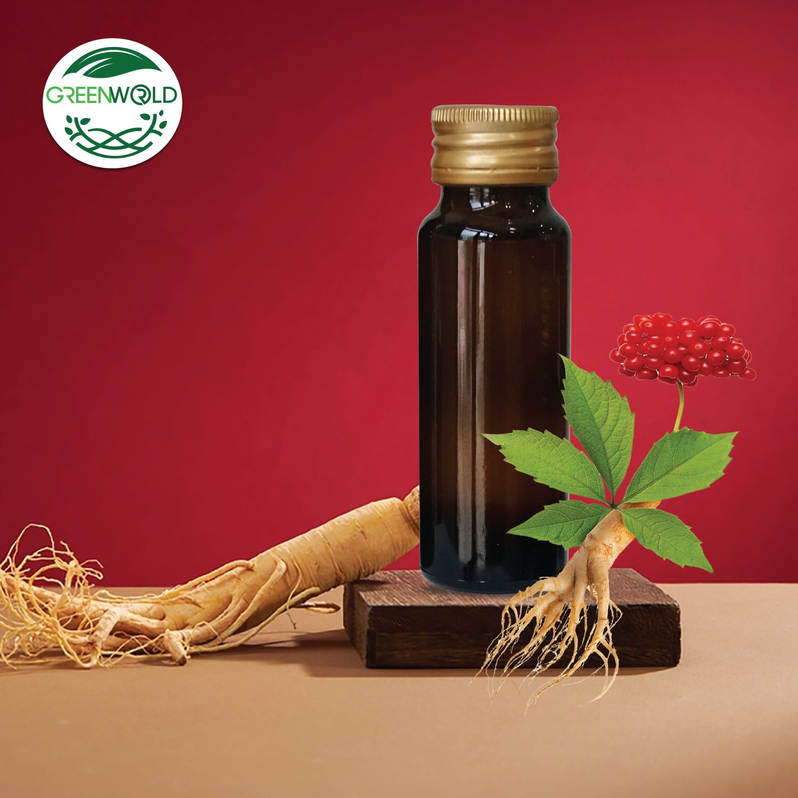 Thành phần: Chiết xuất hồng sâm (hàm lượng saponin 70mg/g, Hàn quốc) chiếm 0.15%, chiết xuất xuyên khung (độ brix 65) chiếm 0.2%, chiết xuất táo đỏ (độ brix 65, Hàn quốc) chiếm 0.2%, đường fructose lỏng, acid citric, Sodium Citrate, màu caramel, hương liệu nhân sâm (hương vị tổng hợp), natri benzoat (chất bảo quản tổng hợp), natri saccharin (chất tạo ngọt tổng hợp).