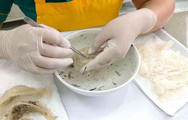 Tổ yến được vệ sinh cự kì công phu và sạch sẽ trước khi chế biết