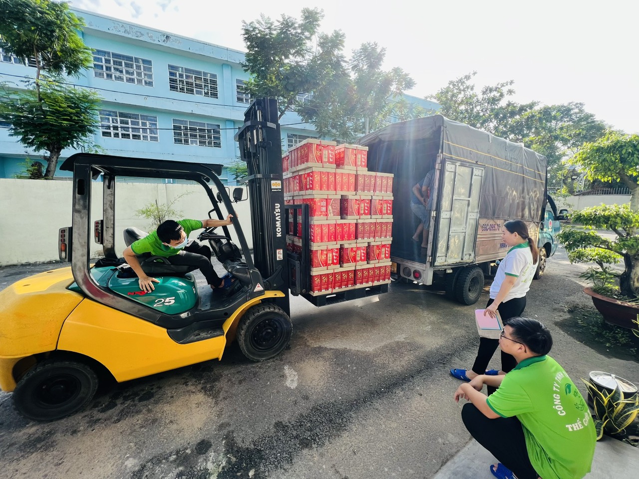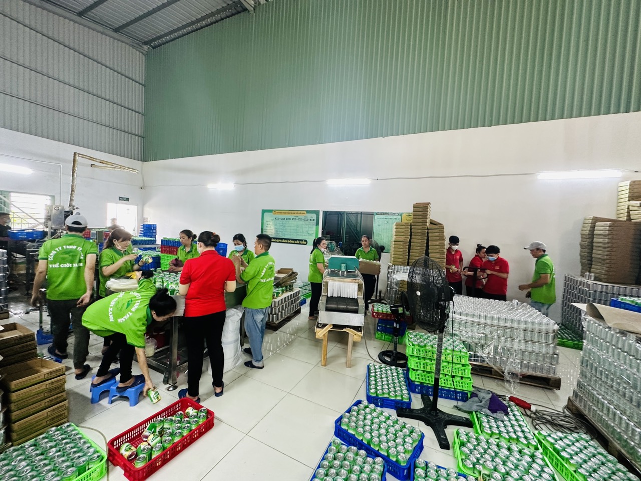 Công nhân của Thế Giới Xanh đang đóng gói đơn hàng khách Miền Bắc